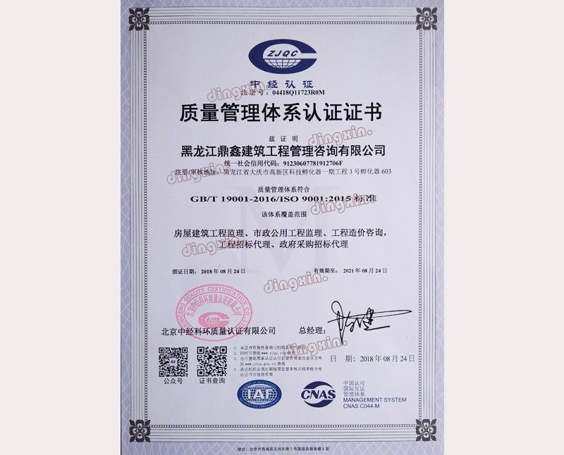 黑龍江鼎鑫建筑工程管理咨詢有限公司成立于2005年,注冊資金400萬元。具備中華人民共和國住房和城鄉建設部批準的工程招標代理機構資格、中華人民共和國財政部批準的政府采購招標代理機構資格、黑龍江省商務廳批準的機電產品國際招標代理機構資格、中華人民共和國住房和城鄉建設部批準的工程造價咨詢甲級資質、黑龍江省住房和城鄉建設廳批準的房屋建筑工程監理乙級(市政公用工程監理乙級資質)。主要從事建設工程及政府采購招標、造價咨詢、工程監理、項目管理等業務。